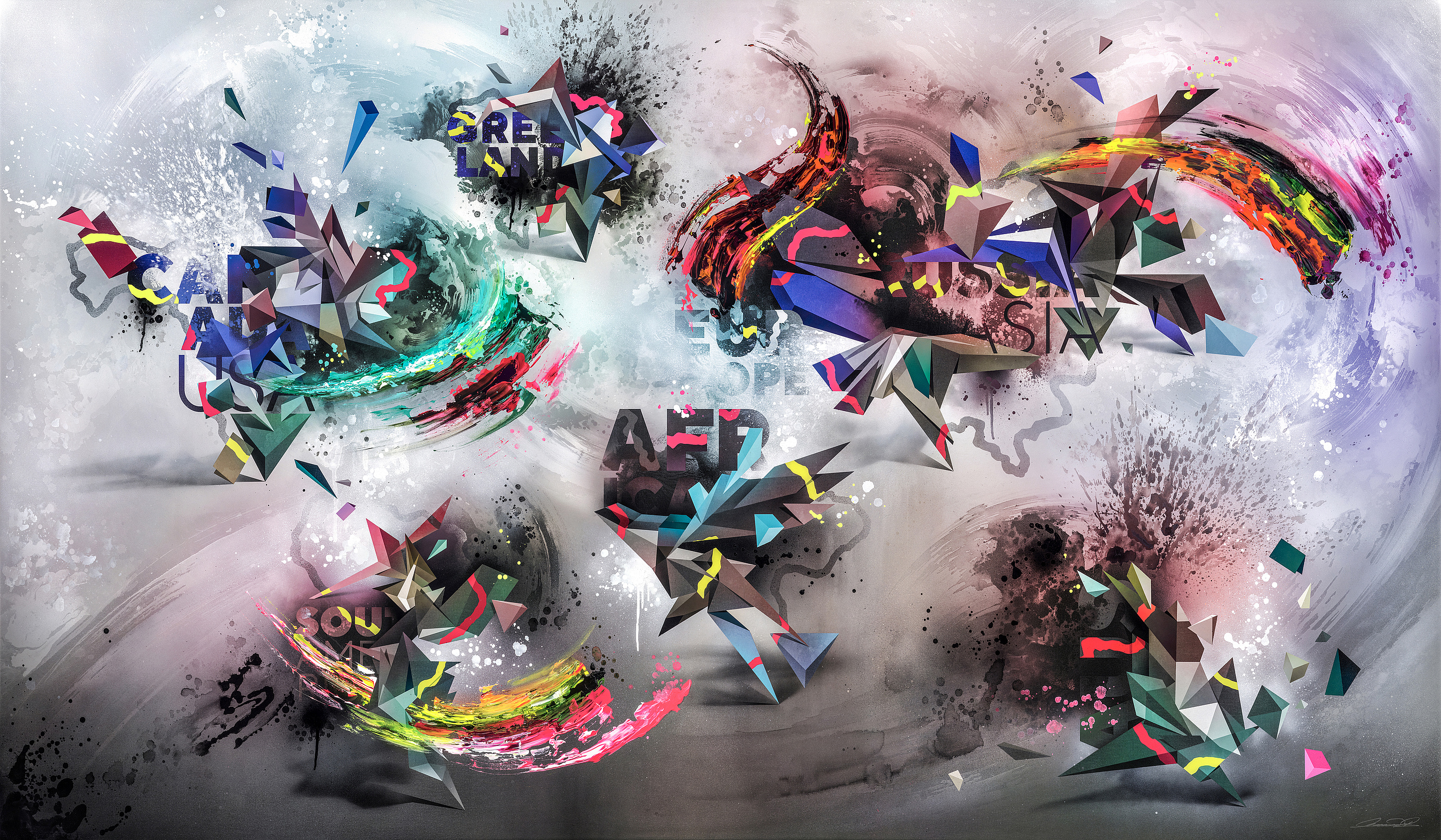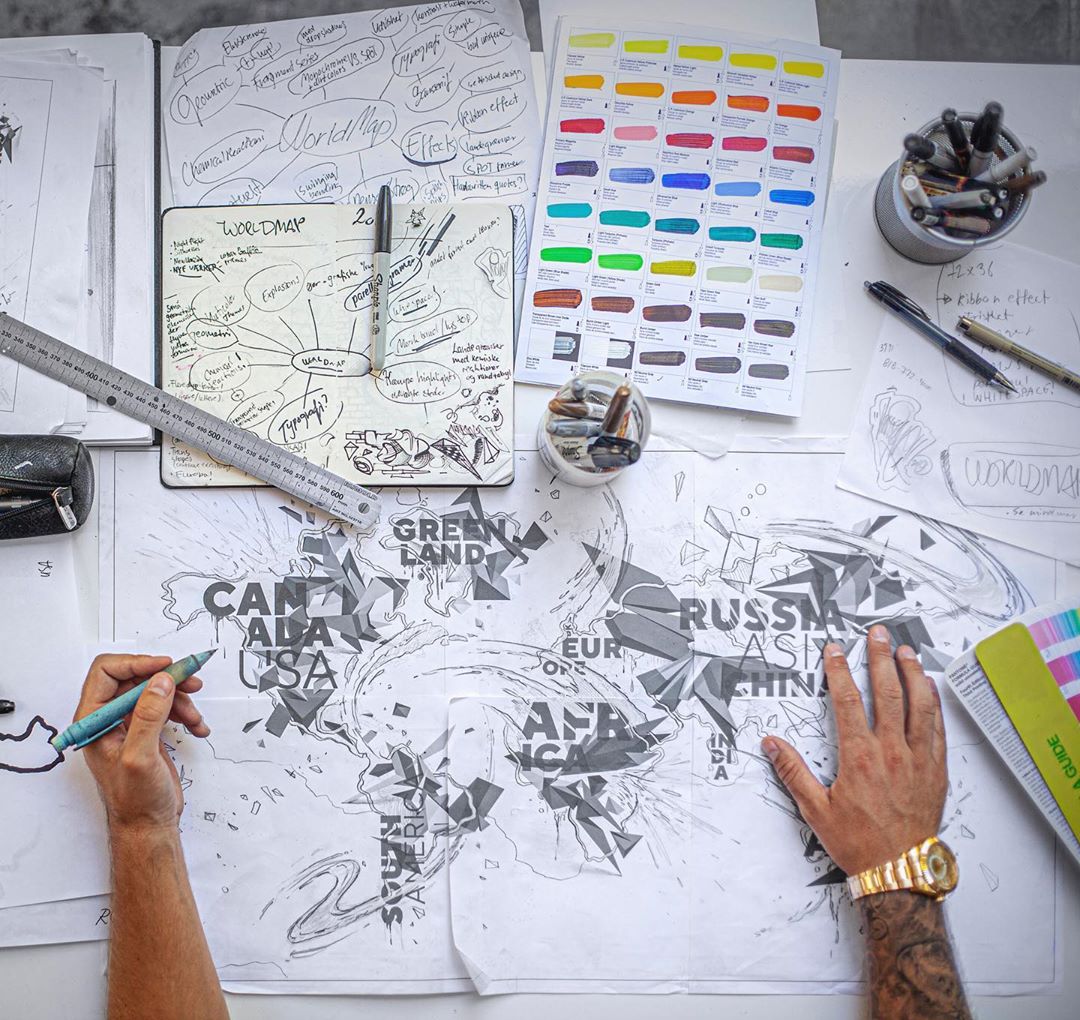 Mikael’s første abstrakte verdenskort “Vibrant World” går viralt.