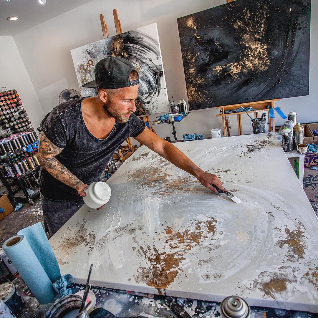 Mikael B mestrer til fulde at omdanne indtryk og oplevelser til et abstrakt formsprog, der emmer af energi og glæde, når han skaber sine konceptuelle kunstværker med spray og akryl. Som urban contemporary kunstner har Mikael B udviklet sin egen identitet og særlige signatur, der allerede blev plantet i de unge år som graffitikunstner. Fra start har Mikael ønsket at bryde med det traditionelle, han er sin egen stil og har meget på hjerte, som han ønsker at dele med omverdenen. Han lever ud fra en bevidsthed om at være til stede og handle i nuet.