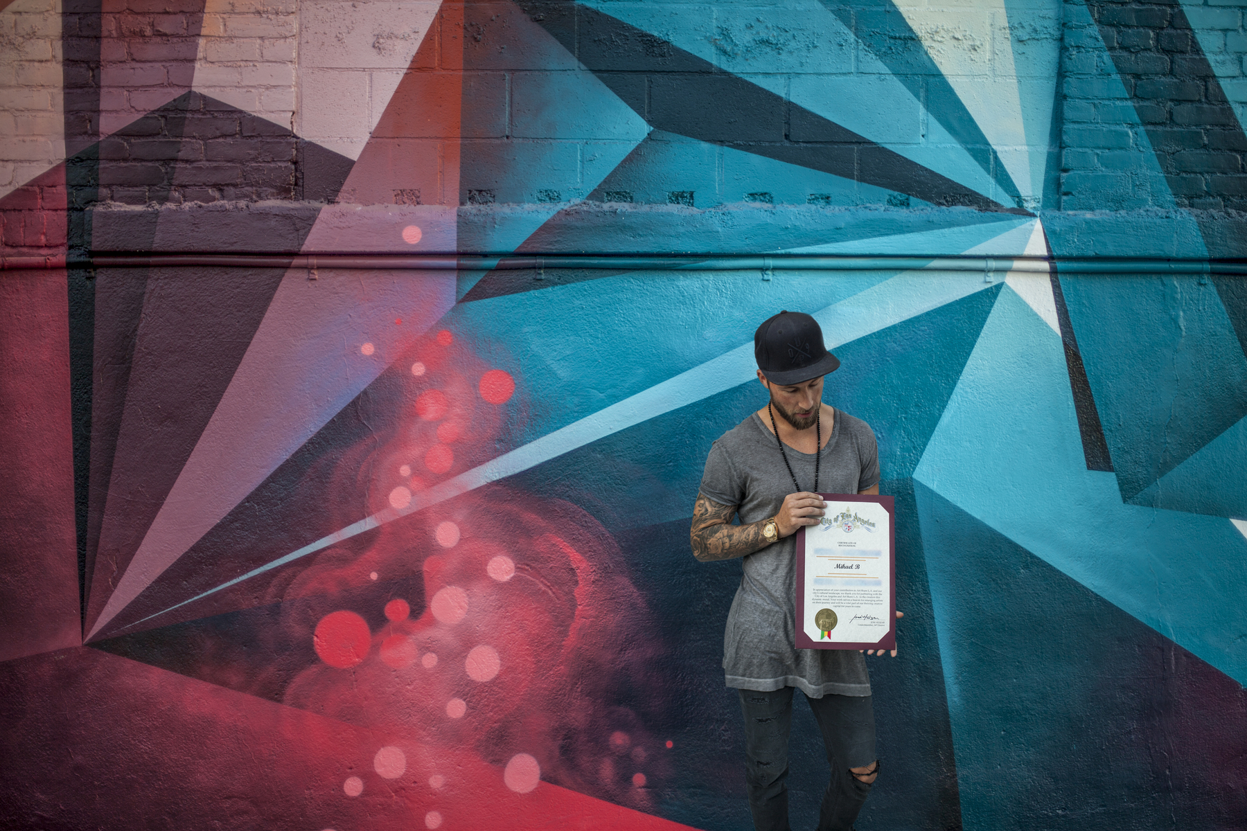 Mikael bliver udvalgt til at dekorere en af de mest kendte bygninger i LA, The Art Share building. Som tak for sit bidrag til LA bliver Mikael hædret med et æresbevis fra The City of LA.